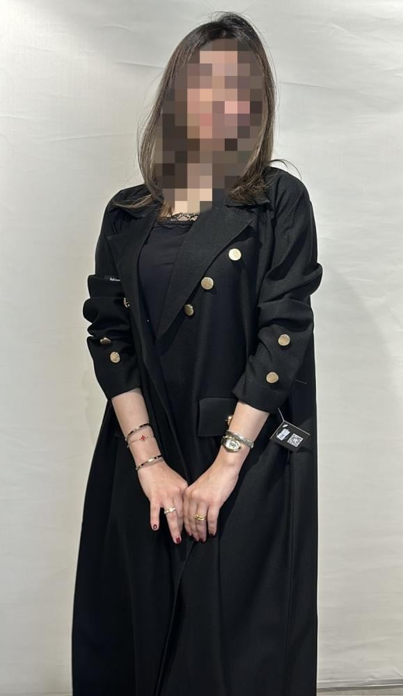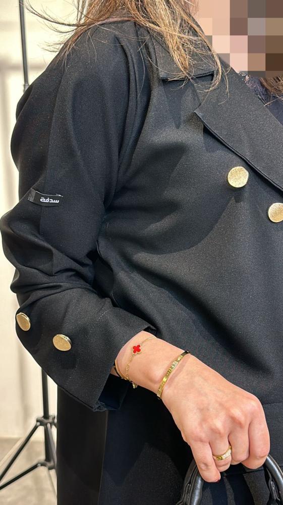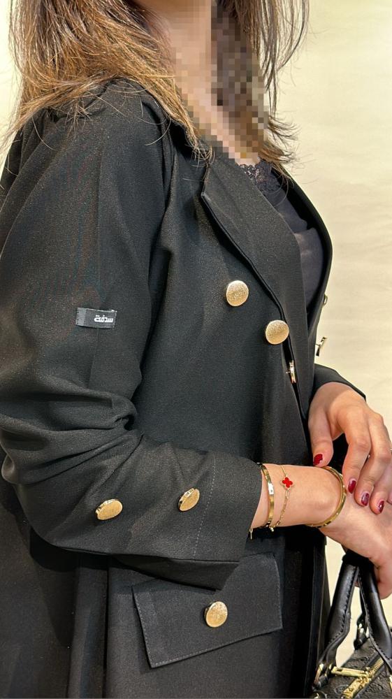 - الموديل : عباية رسمية قصة بليزر مزينة ب ازارير ذهبي من الخلف كسرة